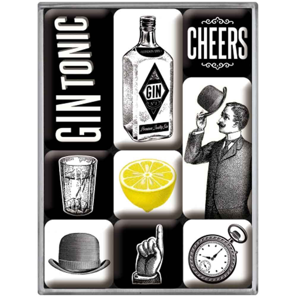 Snyggt set med magneter med "Gin & Tonic" motiv i sann retroanda. Passar fint att ha för kort på kylskåpet med extra starka magneter. Fint presenttips!